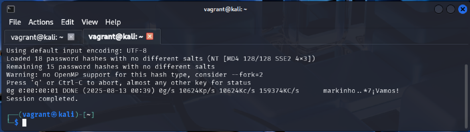 $ john --format=NT ~/Documents/20250812163411_default_10.10.10.2_windows.hashes_283651.txt