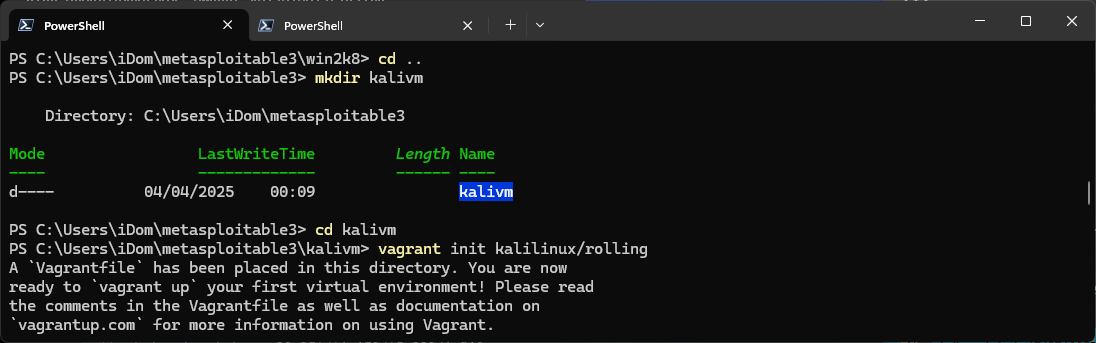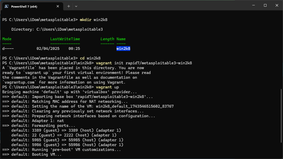 PS C:\Users\iDom\metasploitable3\win2k8> vagrant init rapid7/metasploitable3-win2k8