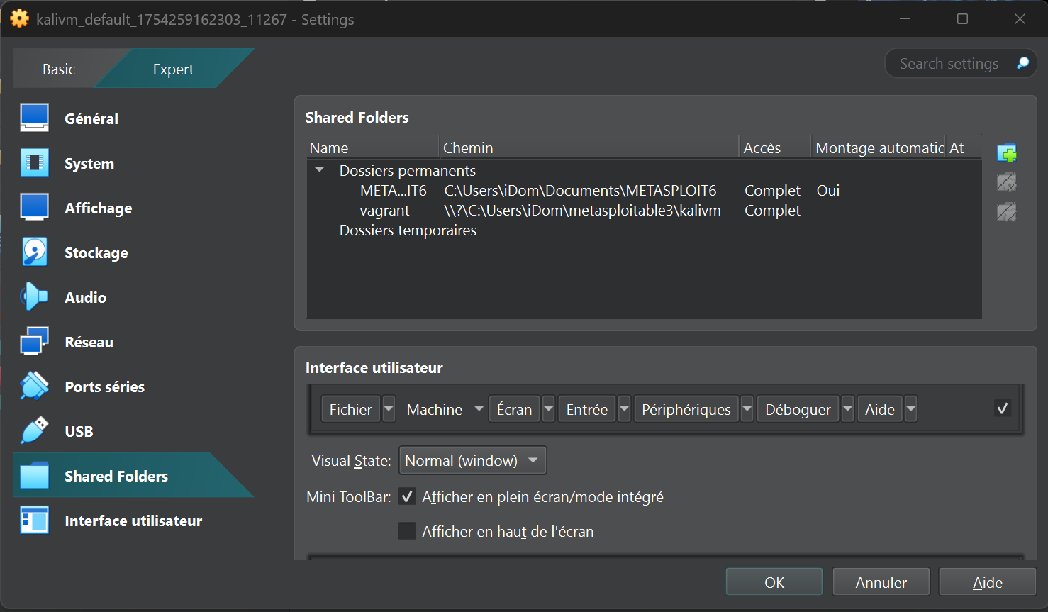 Dans le rĂ©pertoire du projet clonĂ©, nous avons créé un dossier dĂ©diĂ© Ă chaque machine virtuelle Ă installer. Ensuite, nous avons utilisĂ© la commande vagrant init pour initialiser la configuration spĂ©cifique Ă chaque machine, puis vagrant up pour tĂ©lĂ©charger lâimage correspondante, configurer automatiquement la machine virtuelle et la dĂ©marrer dans VirtualBox.