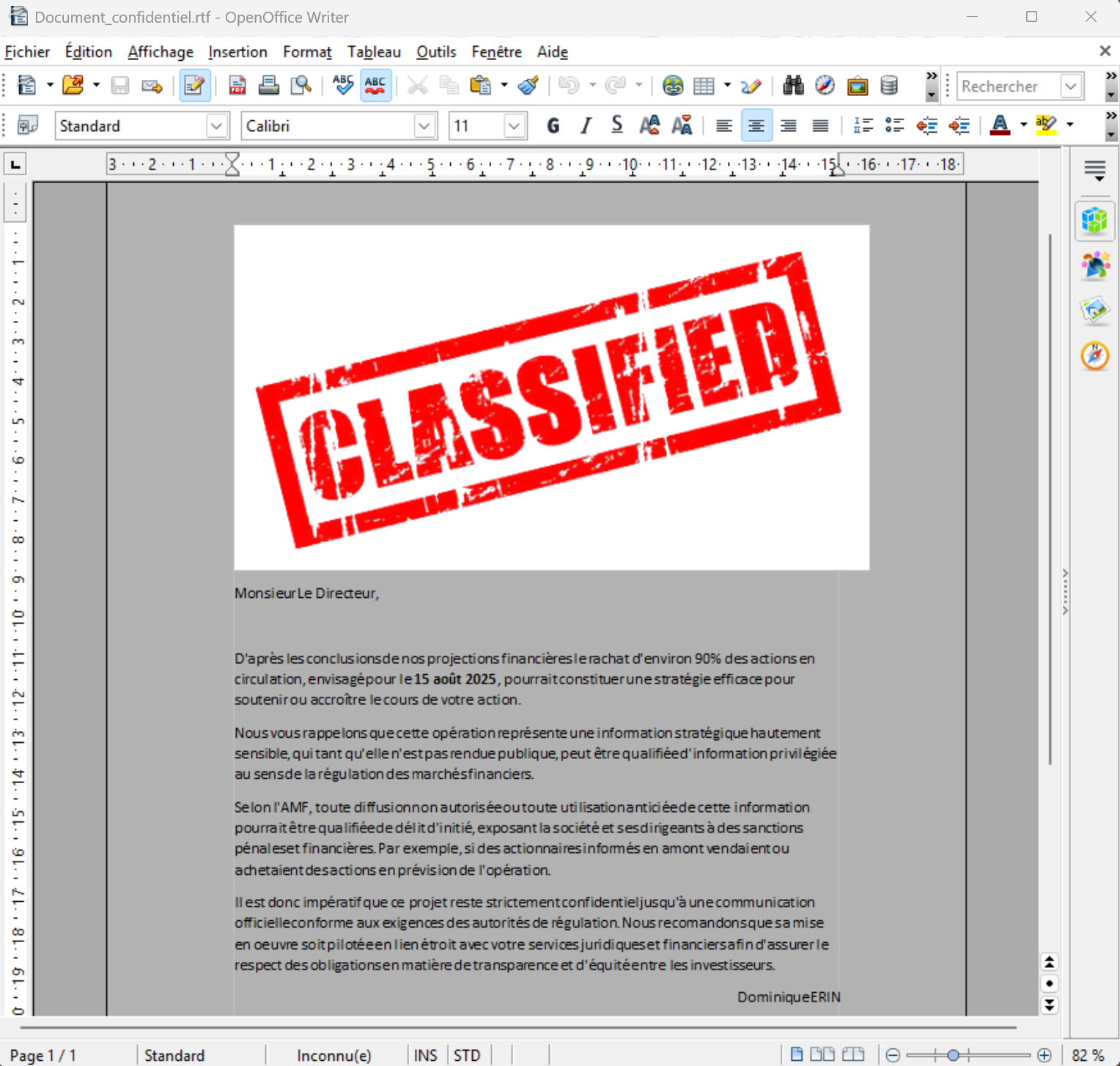 Une fois le fichier transfĂ©rĂ© sur la machine hĂŽte, le pirate lâouvre avec son Ă©diteur de texte OpenOffice afin dâen prendre connaissance.