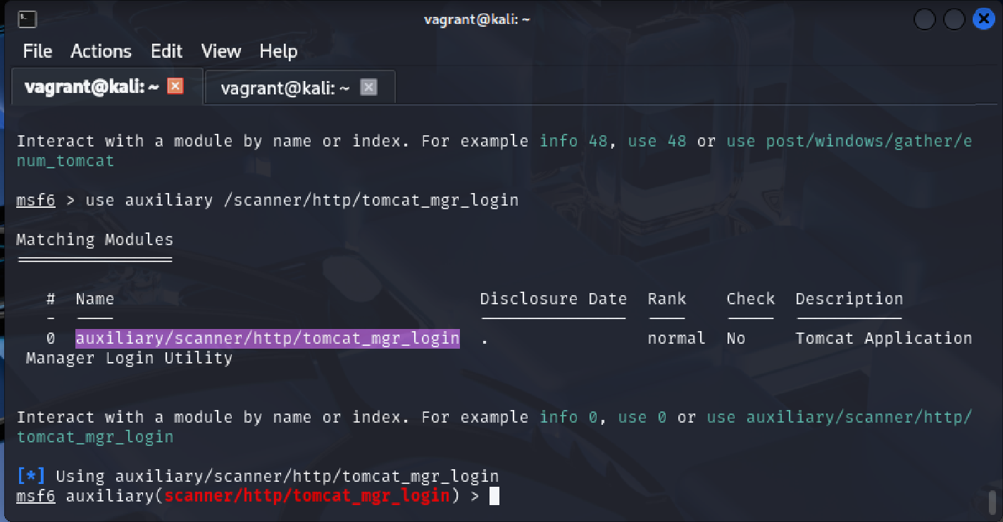 msf6 > use auxiliary /scanner/http/tomcat_mgr_login