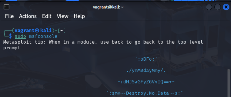 On peut ensuite lancer Metasploit Ă lâaide de la commande suivante: