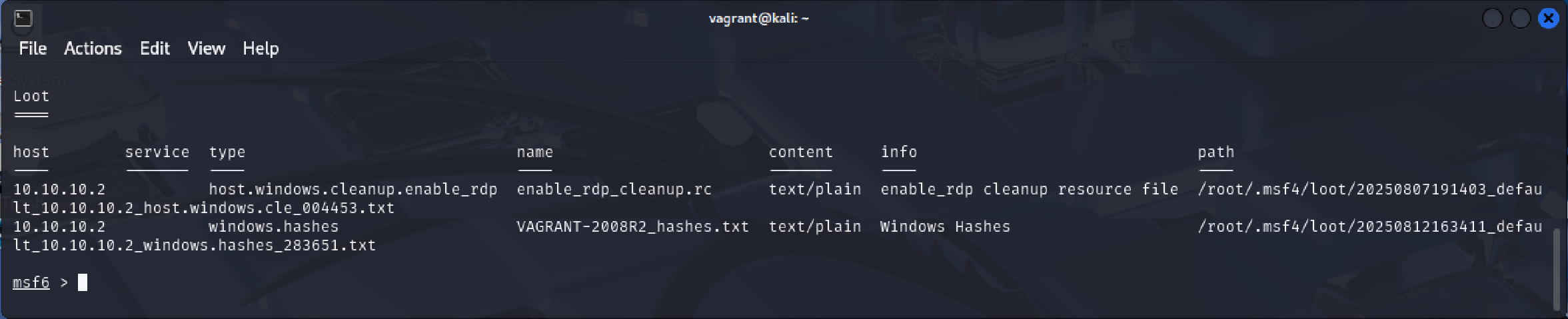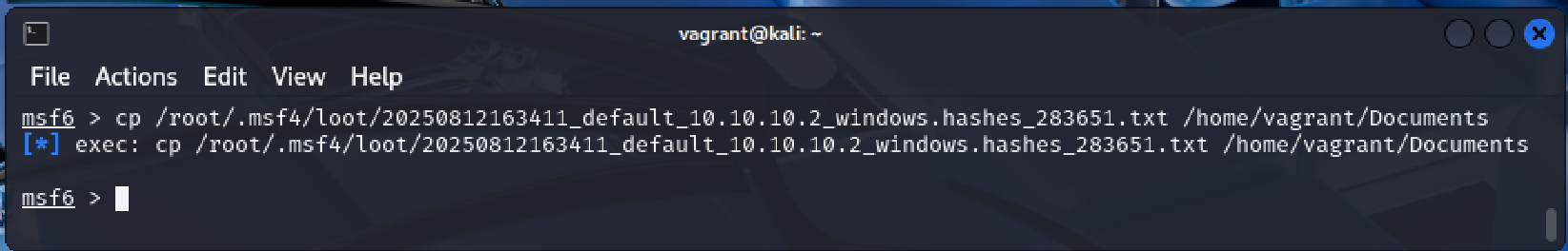 msf6 > cp /root/.msf4/loot/20250812163411_default_10.10.10.2_windows.hashes_283651.txt