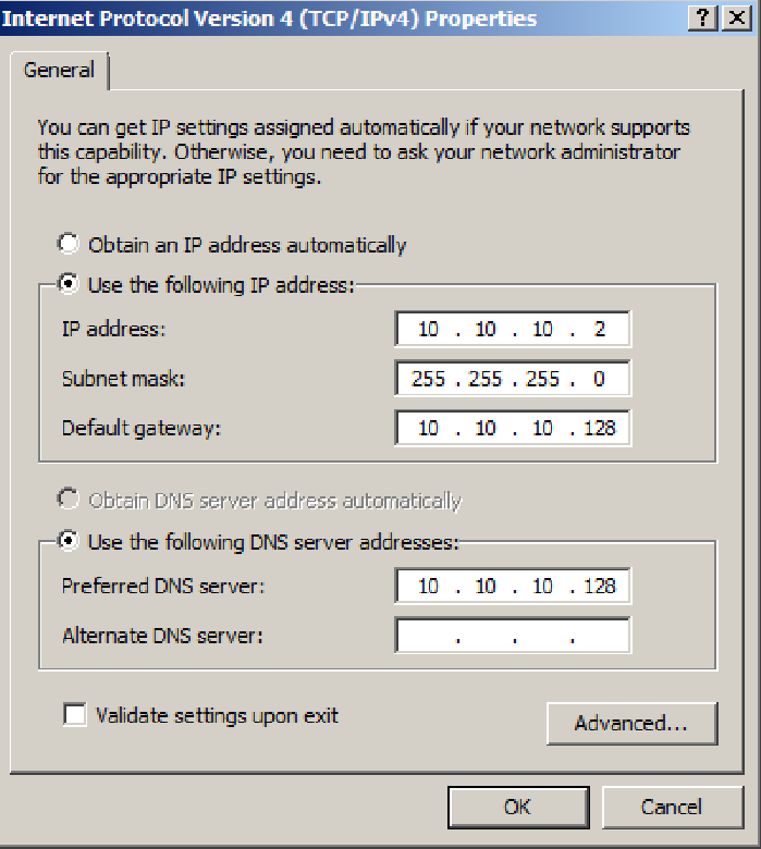 Cette configuration permet Ă Kali Linux de disposer dâune adresse fixe 10.10.10.100/24 sur son interface eth0, utilisĂ©e pour initier les attaques vers la machine pivot Windows Server 2008.